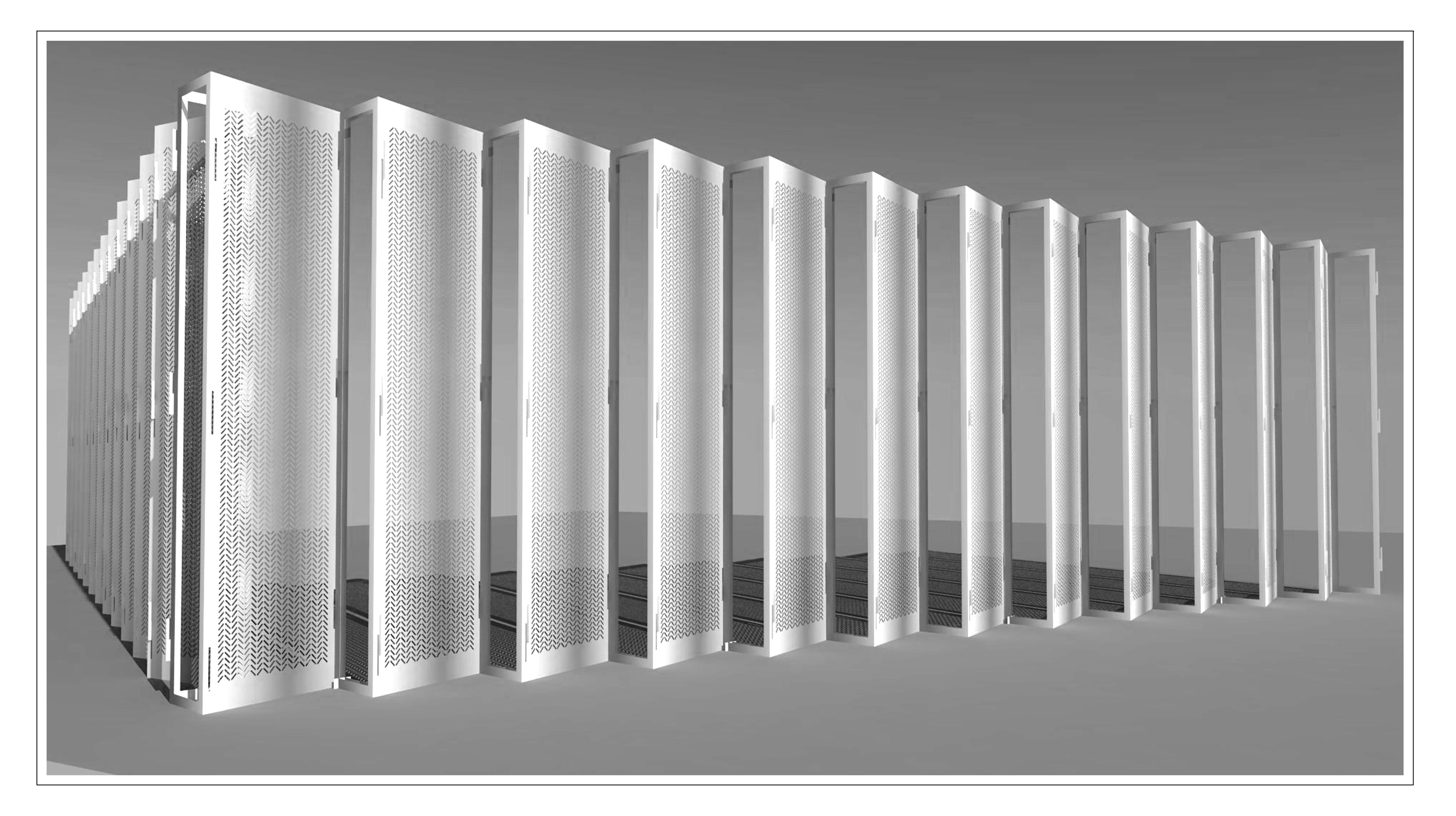 Ogrodzenie w postaci uchylnych żaluzji pionowych jest odpowiedzią na wrodzoną sprzeczność w zadaniu projektowym – konieczność wydzielenia i zabezpieczenia wyznaczonej przestrzeni, przy jednoczesnym zapewnieniu pełnego wizualnego dostępu do niej. Efekt przezroczystości zapewnia całkowite otwarcie jednego z elementów modułu ogrodzeniowego oraz perforację pozostałych. Stopień „otwartości” bariery jest zmieny, wręcz interaktywny – zależy zarówno od miejsca, z którego jest obserwowana, jak i kąt wybrany przez wykonawcę, pod którym umieszczone są elementy modułu. Oprócz przejrzystości cechą decydującą o charakterze systemu jest jego modułowość i prostota wykonania, zarówno poszczególnych elementów, jak i całego ogrodzenia. Ta konstrukcja oparta jest na hakach i kotwach i nie wymaga dużej ingerencji w grunt. Ogrodzenie jest więc tanie i szybkie w budowie. Oprócz wyżej wymienionych cech system posiada widoczne walory artystyczne. Atrakcyjny sam w sobie ornament perforacji pozwala również na wprowadzenie elementów symbolicznych. Pionowy charakter elementów ogrodzenia może budzić skojarzenia z szeregiem uchylonych drzwi, czyli z „wielkim porządkiem” zakorzenionym w judeochrześcijańskiej tradycji architektonicznej – harmonijny rytm kolumn lub pylonów zapowiadających granicę przestrzeni sakralnej. Zatem, przy zachowaniu zaleceń prostoty konstrukcji i użytych materiałów, proponowana koncepcja ogrodzenia modułowego spełnia niezbędne wymogi estetyczne i symboliczne w zgodzie z rangą miejsc, dla których została zaprojektowana.